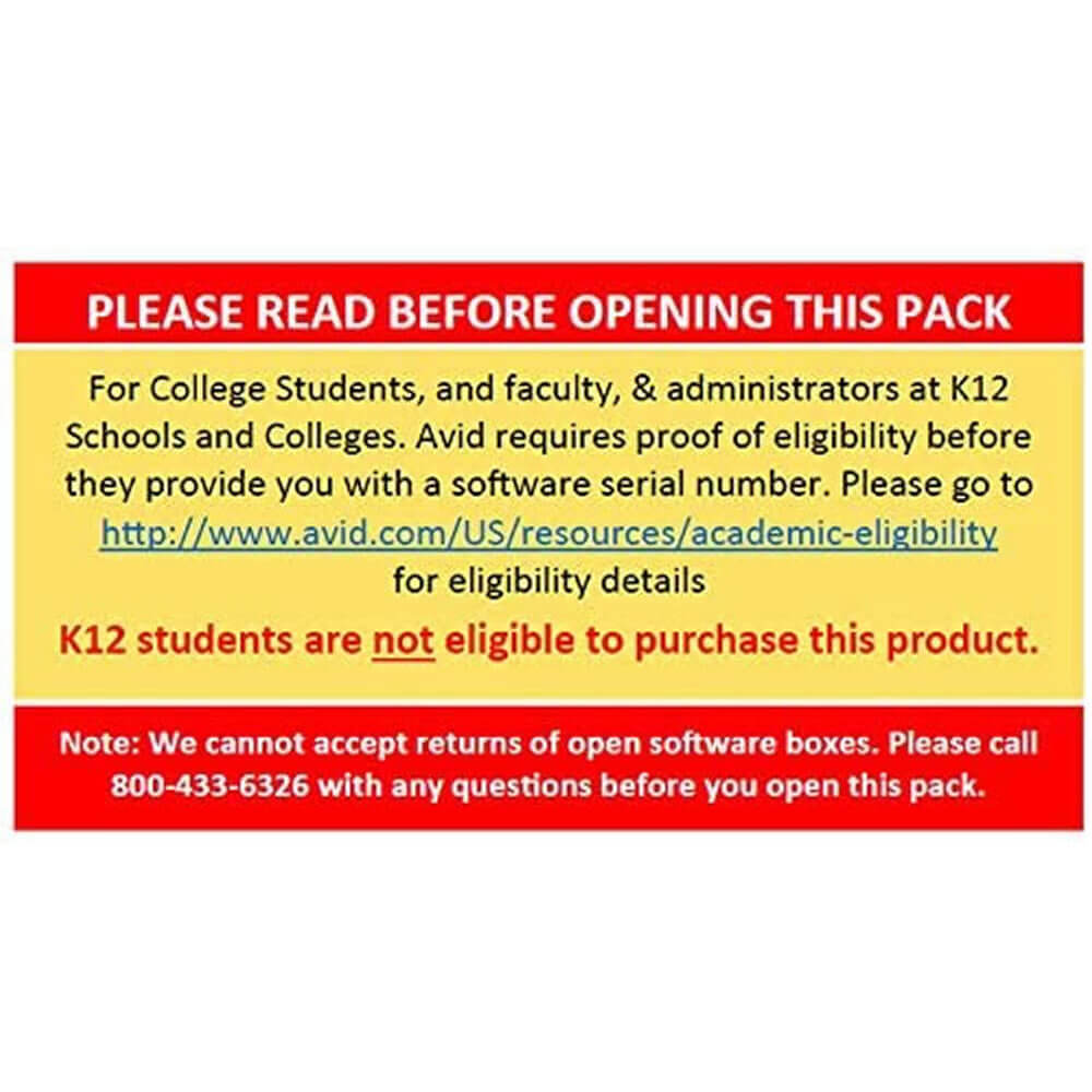 Avid Media Composer Academic Edition is for sale to college students, and faculty, teachers, and administrators at K12 Schools and Higher Education institutions only. K-12 students are not eligible to purchase this product. Proof of eligibility will be required before we can ship your order for this product.