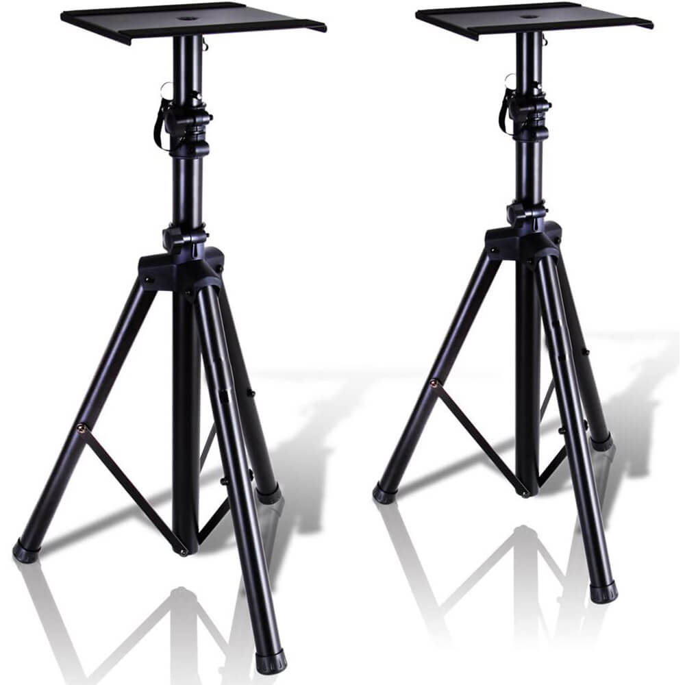 The tripod speaker stands collapse easily to fit inside a bag for easy transportation. It can hold speakers of up to 90 lbs. firmly and steadily for better sound effect. It has anti slip rubber grip pads for stability and precise balance to keep it from collapsing with safety support pin assuring structural solidity. Each stand also features height adjustable from 34.0ƒ?� to 53.0ƒ?� inches high. Aside from that, it also features a unique metal platform base in 8.9ƒ?� x 8.9ƒ?� inches and 2mm thickness for easy speaker mount. Made reinforced solid seam arc-welded metal construction for long term use. Perfect for studio recording and on-stage DJ performances.