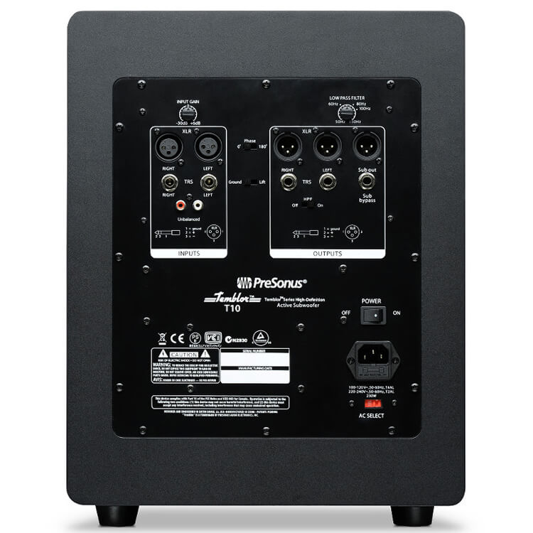 The PreSonus Temblor T10 Active Studio Subwoofer yields an ultra-clean, even low end response that will satisfy even the most discerning ears! PreSonus loads this studio sub monitor with a 10-inch reinforced composition woofer and 170 watts of Class AB power which yields incredible clarity, punch and accuracy so you can get your mix just right. The Temblor T10 powered sub provides all the connections youƒ??d need to incorporate it into any studio.