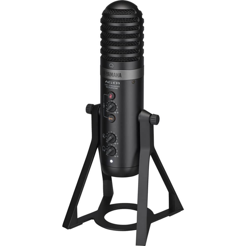The Yamaha AG01 is a stylish microphone that operates on USB bus power and provides a feature set well suited for live streaming and podcasting applications. The mic offers a condenser mic capsule with a cardioid polar pattern that picks up less unwanted background sounds, along with built-in DSP effects, including EQ, compression, and reverb, that you can use to sculpt a more professional sound.