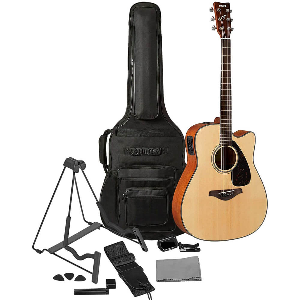 The Yamaha FGX800C Acoustic Electric Folk Guitar (Natural) is a full-sized acoustic/electric guitar with a single-cutaway dreadnought-style body made with a solid spruce top, and nato/okume back and sides with a natural finish. Well suited for solo performance or playing with a full band, the FGX800C utilizes a newly developed scalloped bracing design, which results in a powerful and balanced acoustic sound with strong lows and mids when used unplugged. For amplified performances, the FGX800C also includes a proprietary undersaddle piezo pickup and System 66 analog preamp, which features a volume control, 3-band EQ, mid-freq Q control, and onboard chromatic tuner.
