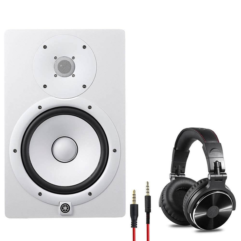 Yamaha HS8W Powered Studio Monitor White Bundle with Studio Monitor & Mixing DJ Stereo Headphones