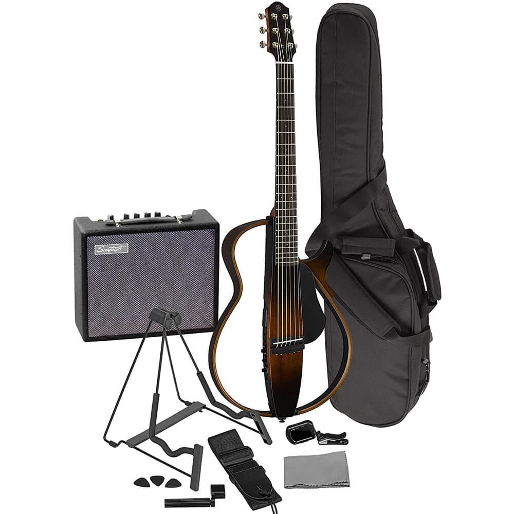 The Yamaha SLG200S Steel String Silent Guitar is a steel-string Silent Guitar that offers an acoustic-type sound, with a slim neck and low action. With its mahogany neck and body, rosewood fingerboard and bridge, this guitar offers a unique playing experience and has a great look to match.